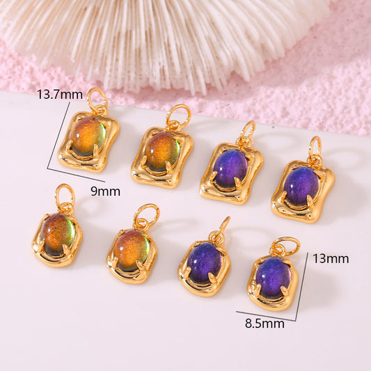 2 Rectangle Charm Pendant Oval Resin Embellished 14K GF