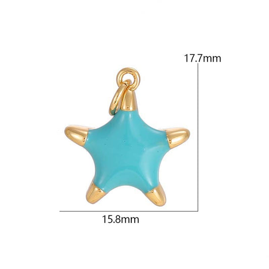2 Star Charm Pendant Enamel Epoxy 14K GF