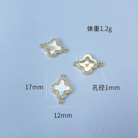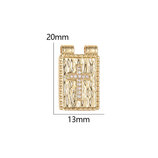 2 Double Looped Cross Charm Connector Shell Rhinestone Embellished 14K GF