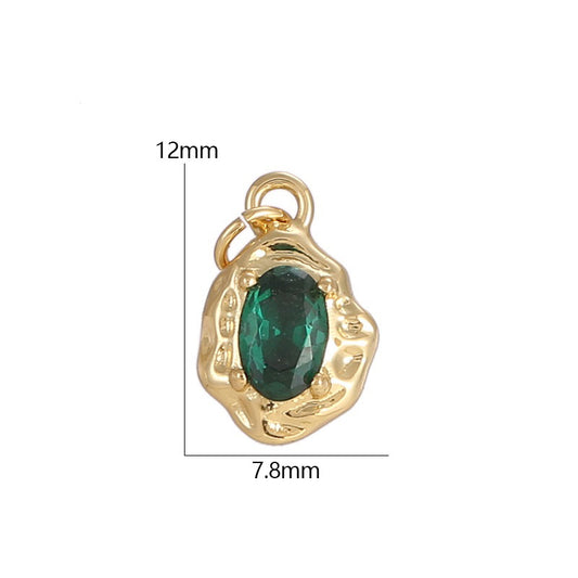 2 Oval Charm Pendant Rhinestone Embellished 14K GF
