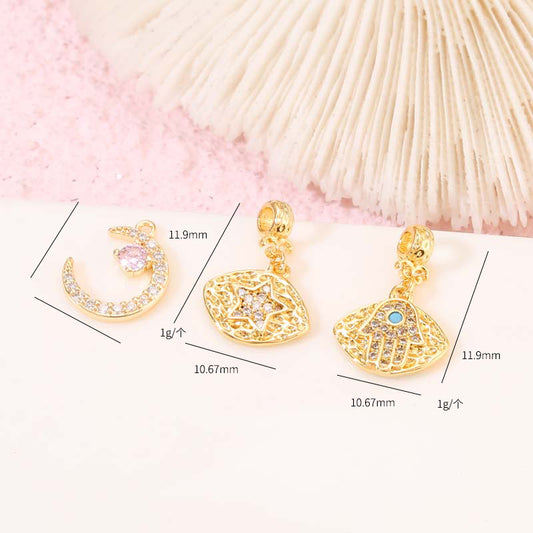 2 Hamsa Star Moon Charm Pendant Rhinestone Embellished 14K GF