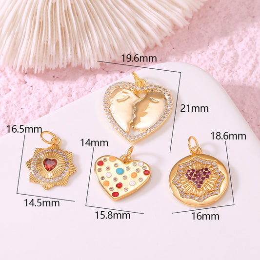 2 Heart Charm Pendant Rhinestone Embellished 14K GF