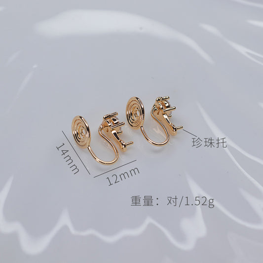 4 Spiral Ear Clips No Piercing Earring Rhinestone Embellished 14K GF Earing Half Drilled Pearl Bead Blank