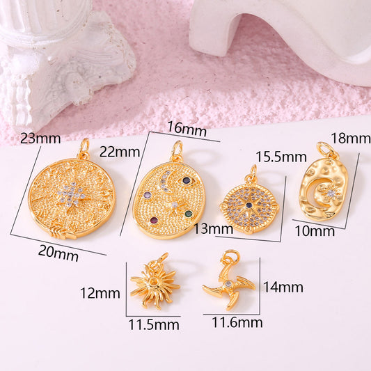 2 Star Moon Sun Coin Charm Pendant Rhinestone Embellished 14K GF