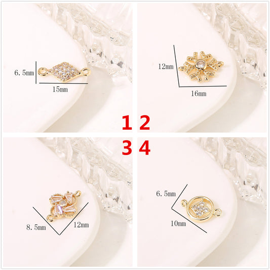 2 Double Looped Floral Snowflake Diamond Olive Charm Connector Rhinestone Embellished 14K GF