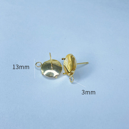 4 Plain Round Pad Stud Earrings with Loop 14K GF Earing Four Claws Cabochon Base Blank