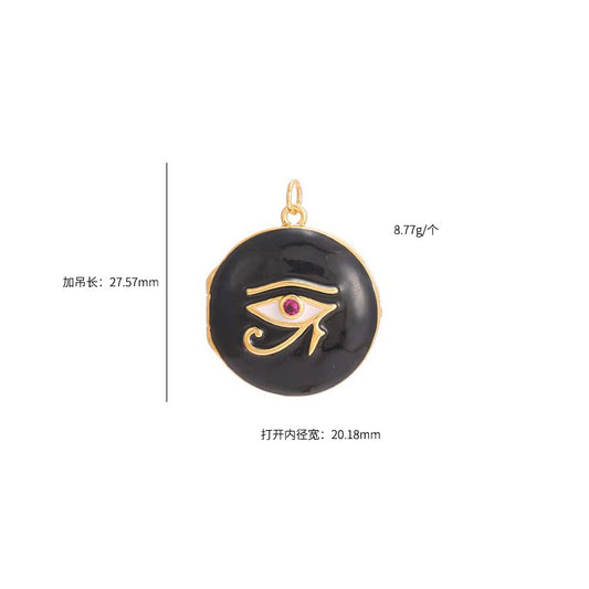 2 Round Eye Locket Charm Pendant Enamel Epoxy Rhinestone Embellished 14K GF