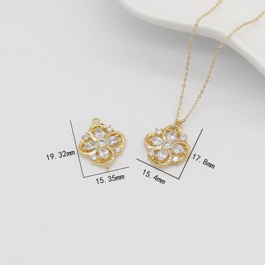 2 Floral Charm Pendant Rhinestone Embellished 14K GF