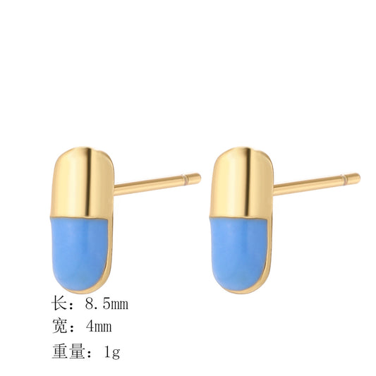 4 Capsule Stud Earrings 14K GF Enamel Epoxy Earing