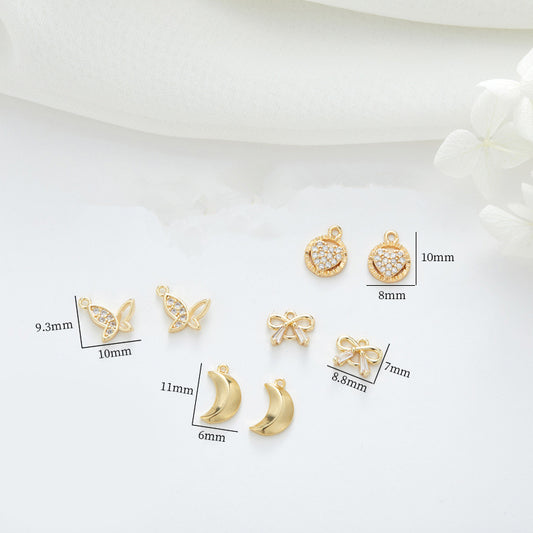 2 Bowknot Butterfly Moon Heart Charm Pendant Rhinestone Embellished 14K GF