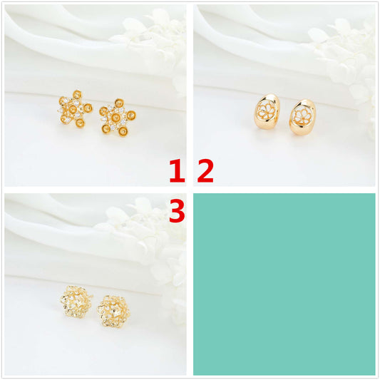 4 Floral Stud Earrings 14K GF Rhinestone Embellished Earing
