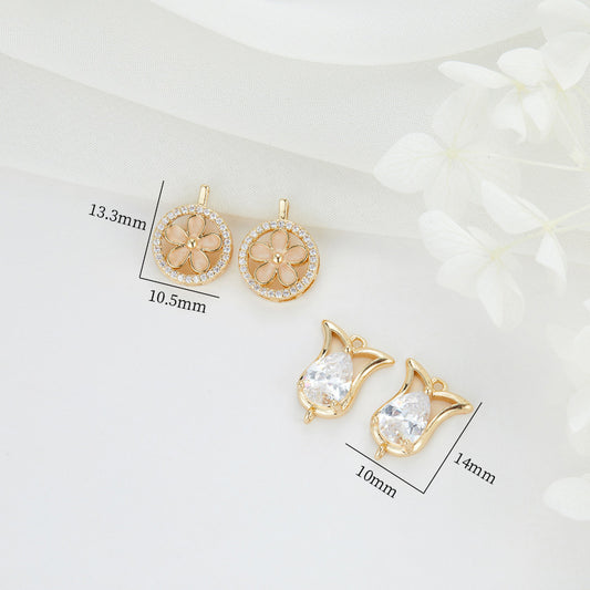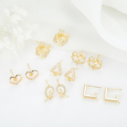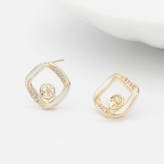 4 Twined Square Circle Stud Earrings Enamel Epoxy Rhinestone Embellished 14K GF Earing Half Drilled Pearl Bead Blank