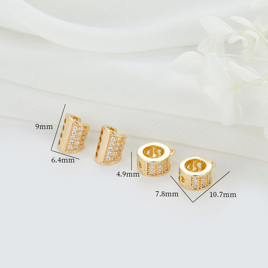 2 Big Hole Cylinder Column Bead 14K GF Charm Rhinestone Embellished Beadwork Spacer