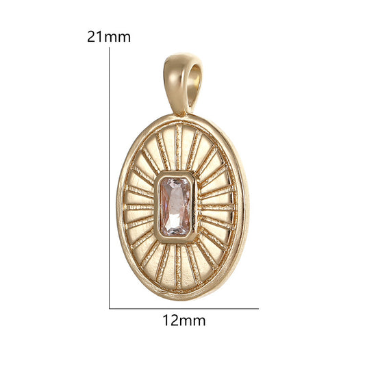 2 Oval Piece Charm Pendant Rhinestone Embellished 14K GF