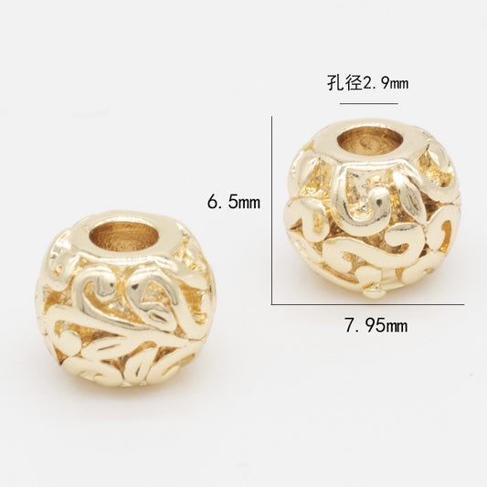 2 Tiny Round Floral Vine Bead 14K GF Charm Beadwork Spacer