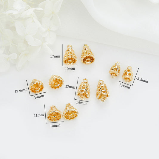 10 Double Looped Hollow Bell Charm Connector 14K GF