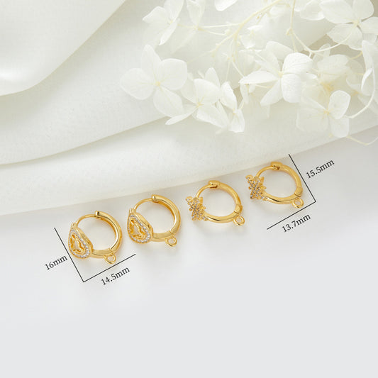 4 Star Floral Hoop Earrings with Loop Rhinestone Embellished 14K GF Earing