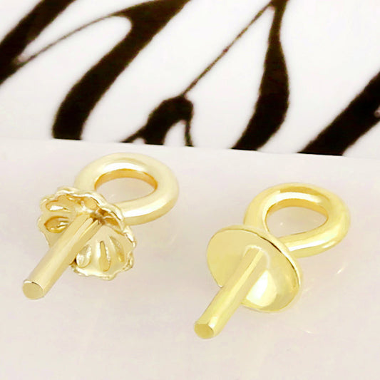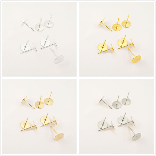 Bulk 100 Plain Round Pad Stud Earrings with Loop 18KGP Earing Cabochon Base Blank 6mm 8mm 10mm 12mm