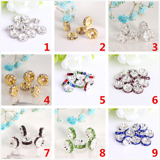 Bulk 100 Rhinestone Silver Circle Flat Bead Charm Spacer Handmade Jewelry Finding 6mm 8mm 10mm