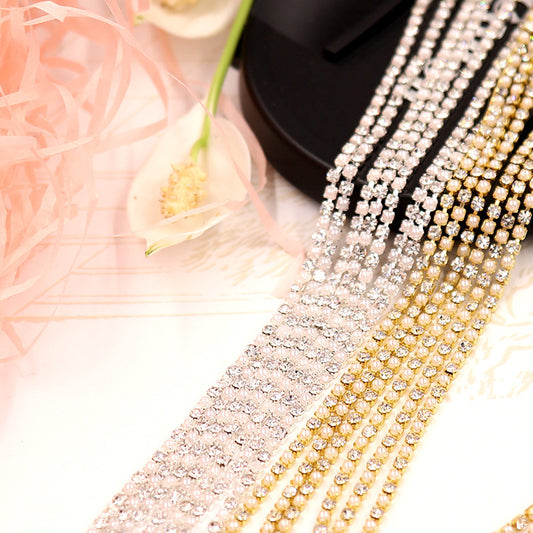 Round Pearl Rhinestone Cup Chain Gold / Silver Trim Metal Cup Close Chain Jewelry High Quality Wedding Veil Finding 2.5mm 3mm 4mm