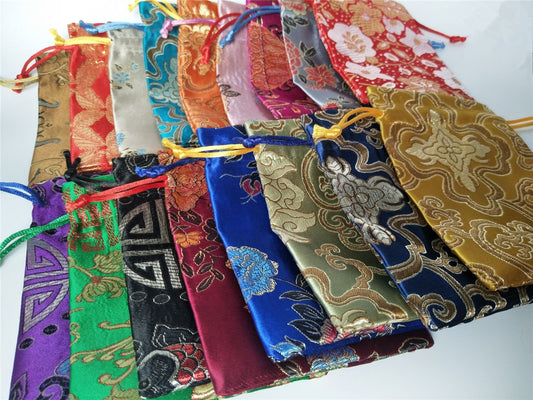 4x5" Colorful Chinese Silk Pouches Pocket Money Coins Bags Drawstring Grab Bag lot Traditional Packaging Bags for Jewelry Gifts