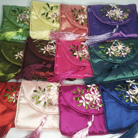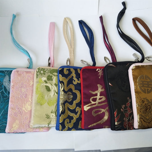 5x6.5" Colorful Chinese Silk Pouches Pocket Money Coins Bags with Two Zips Grab Bag lot Traditional Packaging Bags for Jewelry Gifts