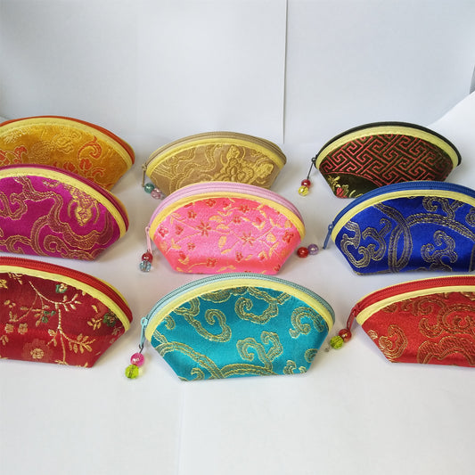 2x2.5x4.5" Colorful Shell Chinese Silk Pouches Pocket Money Coin Bags with Zip Grab Bag Traditional Packaging Bags for Jewelry Gifts