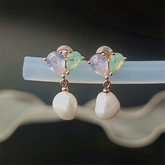 Natural Freshwater Baroque Pearl Earrings Daily Wear 14K GF Rosepink Rectangle CZ Ear Stud Dangle Earing