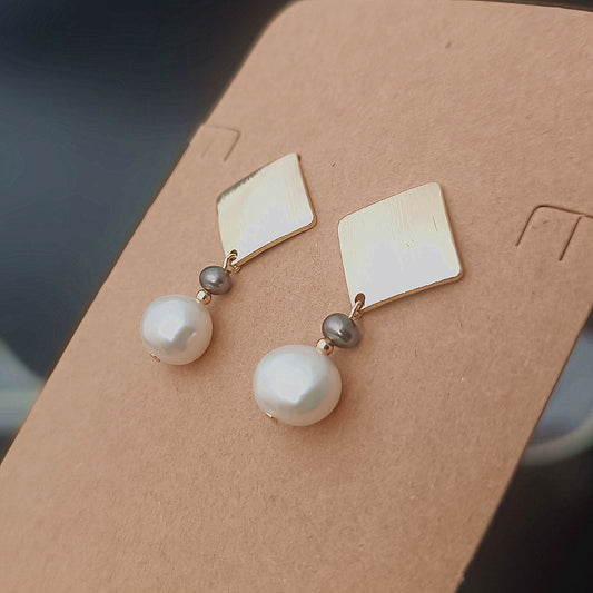 Natural Freshwater Baroque Pearl Earrings Daily Wear Frosted Square 14K GF Ear Stud Dangle Earing