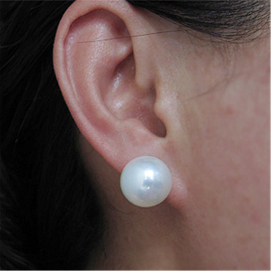 High Quality Round Shell Pearl Stud Earrings 8mm 10mm 12mm 14mm South Sea Sterling Silver Stud