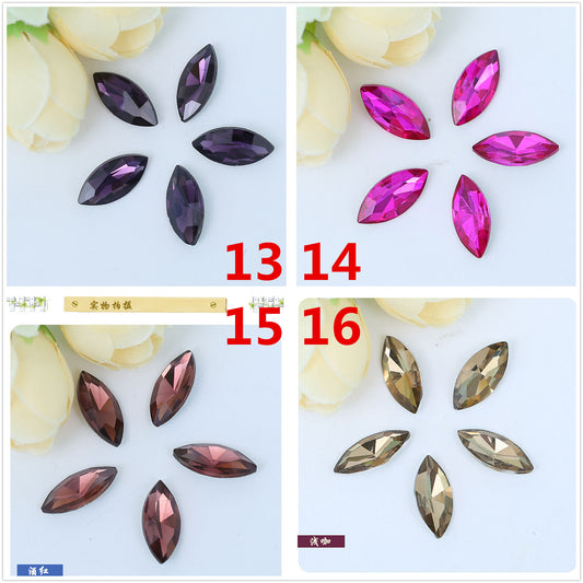 Bulk 500 Shuttle Shape Faceted Flat Back Glass Cabochon Rhinestone Gemstone Handmade Jewelry Finding 4x8mm 5x10mm 6x12mm 7x15mm 8x16mm 10x20mm 13x25mm 10x32mm