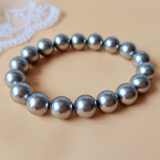 High Quality 10MM Gray Shell Pearl Bracelet 7" South Sea Beaded Elastic Bangle