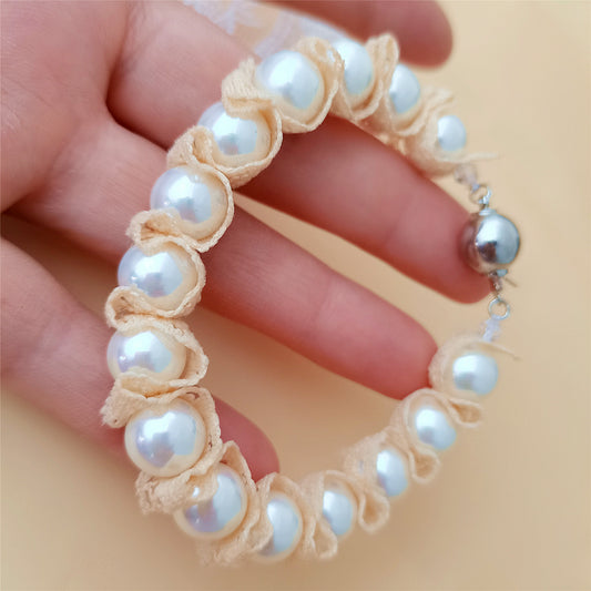 High Quality 10MM White Shell Lace Pearl Bracelet 7" South Sea Beaded Bangle