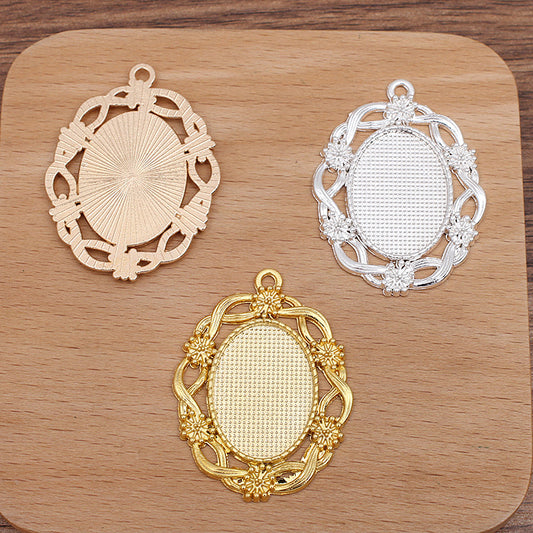 30 Oval Charm Pendant 18KGP 18x25mm Cabochon Blank Base Gemstone Piece Setting