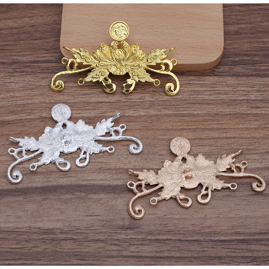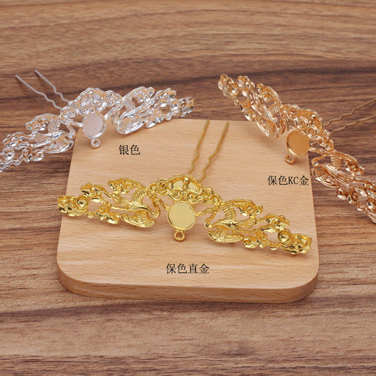 10 Bent Multi Floral Charm Hair Fork Hairpin 18KGP 6mm Round Bead Blank Gemstone Beads Setting