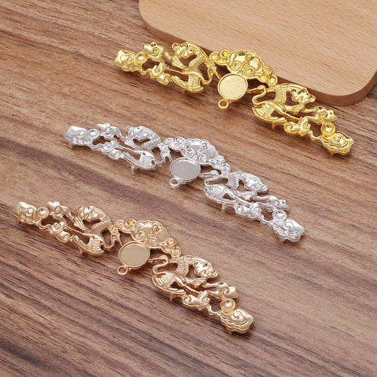 10 Multi Looped Crane Cloud Charm Hair Fork Hairpin 18KGP 10mm Round Cabochon Blank Base Gemstone Piece Setting