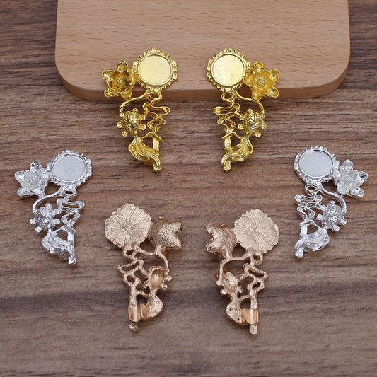 10 Goldfish Floral Chinese Stick Hairpin 18KGP 10mm Round Cabochon Blank Base Gemstone Piece Setting
