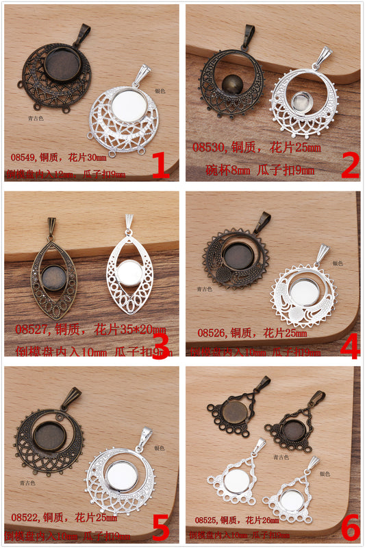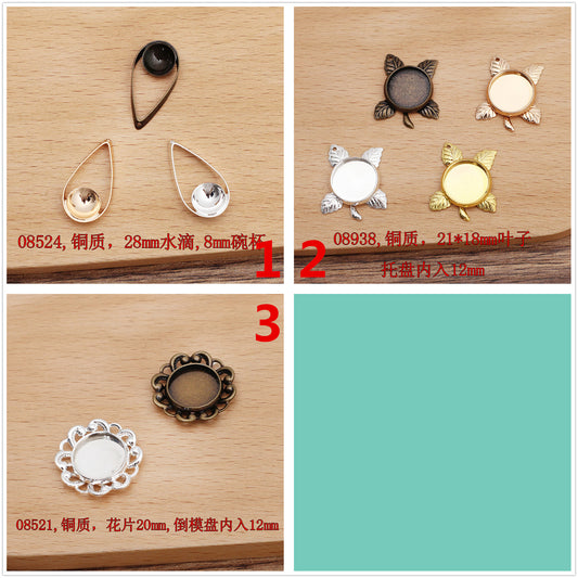 100 Waterdrop Floral Charm Pendant 18KGP 8mm 12mm Round Cabochon Blank Base Gemstone Piece Setting