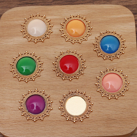20 Enamel Epoxy Cloud Charm Pendant 18KGP 10mm Round Cabochon Blank Base Gemstone Piece Setting