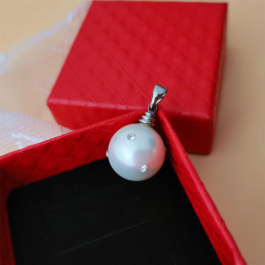High Quality 14MM CZ Embellished White South Sea Shell Pearl Pendant