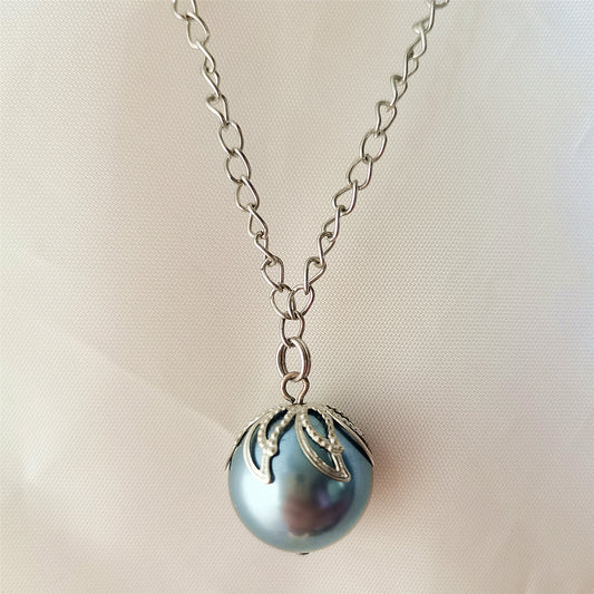 High Quality 16MM Black South Sea Shell Pearl Pendant Cable Chain Necklace