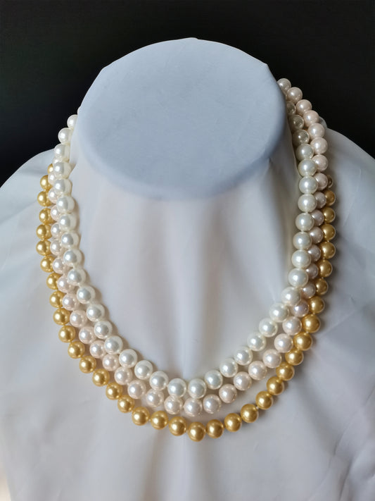 AAA+ Three Rows 8MM Multicolor Shell Pearl Necklace 16" South Sea Beaded Choker