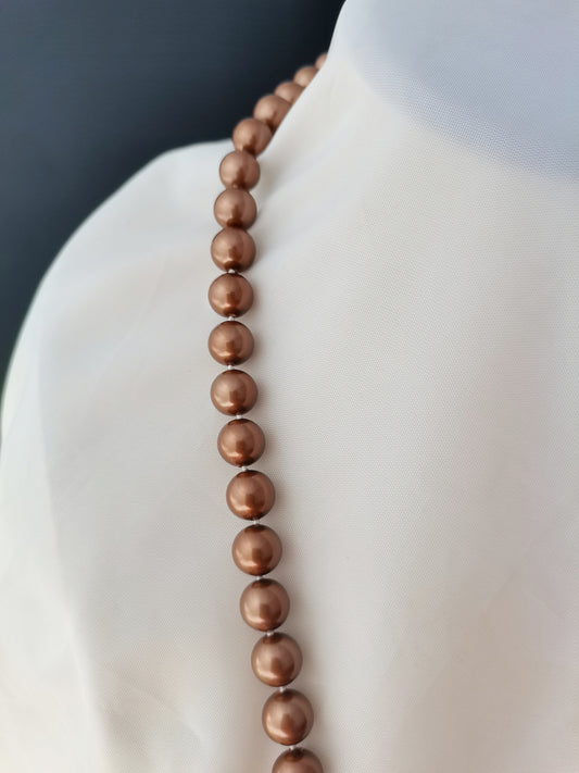 High Quality 10MM Brown Shell Pearl Necklace 24" South Sea Beaded Long