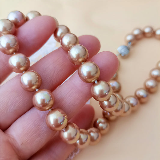 High Quality 10MM Champagne Shell Pearl Necklace 16" South Sea Beaded Choker