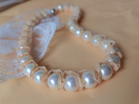 High Quality 12MM White Shell Pearl Lace Necklace 16" South Sea Beaded Choker