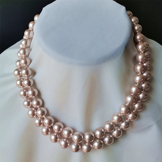 AAA+ Two Rows 10MM Lavender Shell Pearl Necklace 16" South Sea Beaded Choker