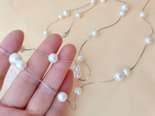 High Quality 8-10MM White Shell Pearl Long Necklace 38" South Sea Beaded Chain