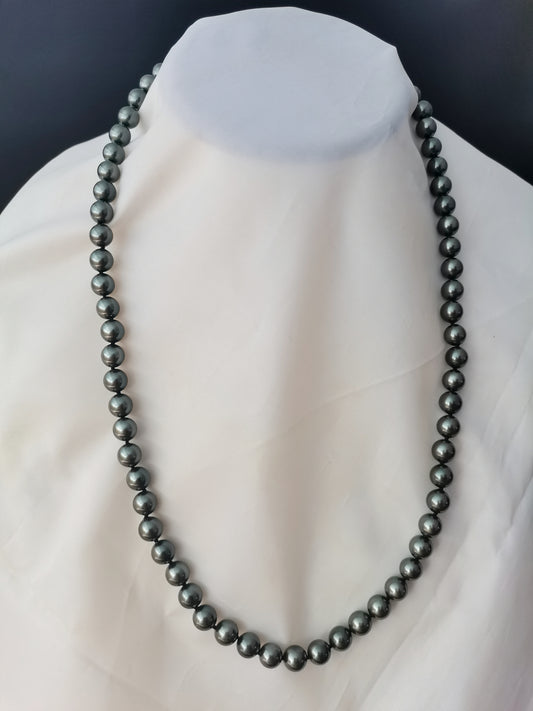 High Quality 8MM Peacock Black Shell Pearl Necklace 24" South Sea Beaded Long