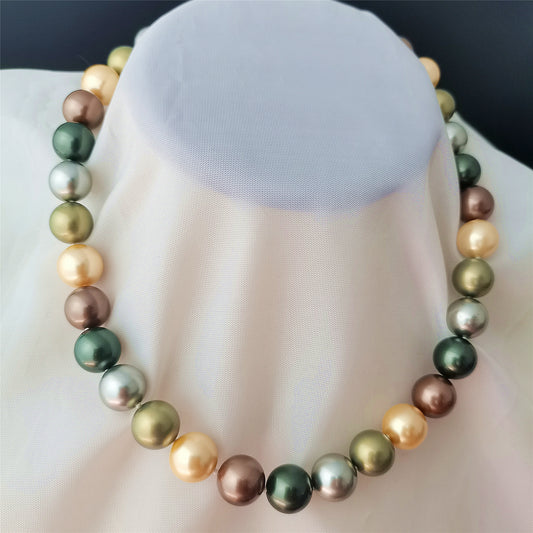 High Quality 12MM Multicolor Shell Pearl Necklace 16" South Sea Beaded Choker
