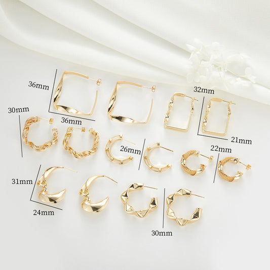 Verdrehte Ohrstecker mit 4 Steineinsätzen, 14K GF-Strassverzierung